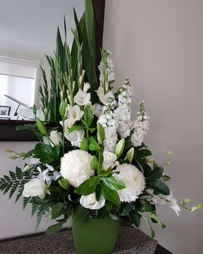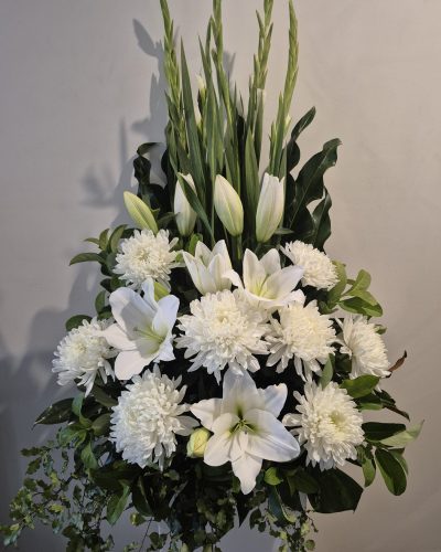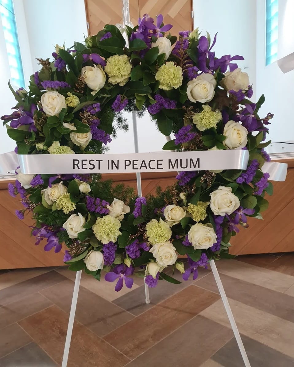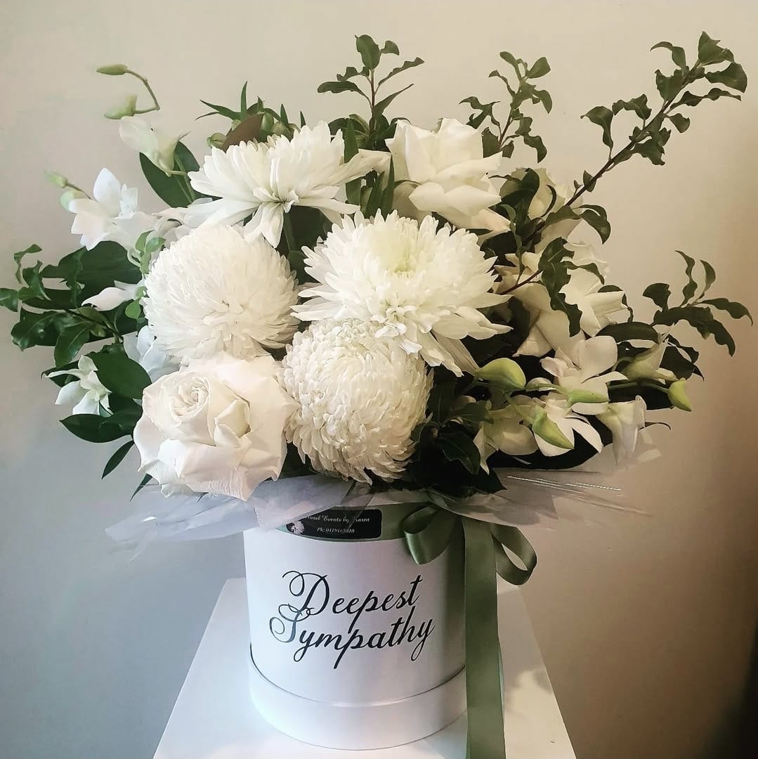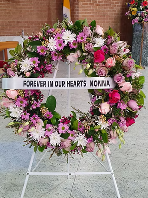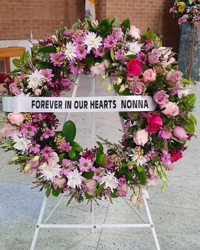 SorrowRibbon $10 Maxium 5 words Medium $150 Large $220 Grace Medium $120 Large $180 Traditional WreathMedium $180 Large $250 Forever Love Medium $180 Large $250 Love & Thoughts Medium $150 Large $250 Extra Large $320 Ribbon $10extra Maximum 5 words Open Spray $120 Rosa Medium $220 Large $280 Extra large $350 Peace Medium $120 large $220 Large Wreath $260 Large Open Spray $150 Precious $150 Sympathy Vase $110 Sympathy Bouquet $120 Large Sympathy Bowl $160 Bouquet of Roses$80(Vase not included) Charlotte $80 Christine $90 Angelina $130 large sympathy box$150 Sincere Sympathy$120 Personalised floral Letters $150 each(72 hours notice is required) Dad & Mum Tribute$350